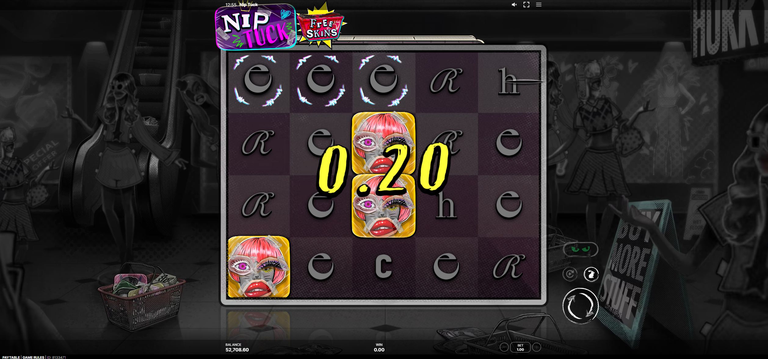 Landing a Free Skins symbol during this round upgrades it to Super Lock & Load. The enhanced version features improved Receipt value ranges during Face Deal, an upgraded Multiplier that boosts by 5x instead of 3x, and an improved Enhancer that adds 10x rather than 5x to all Receipt symbols.